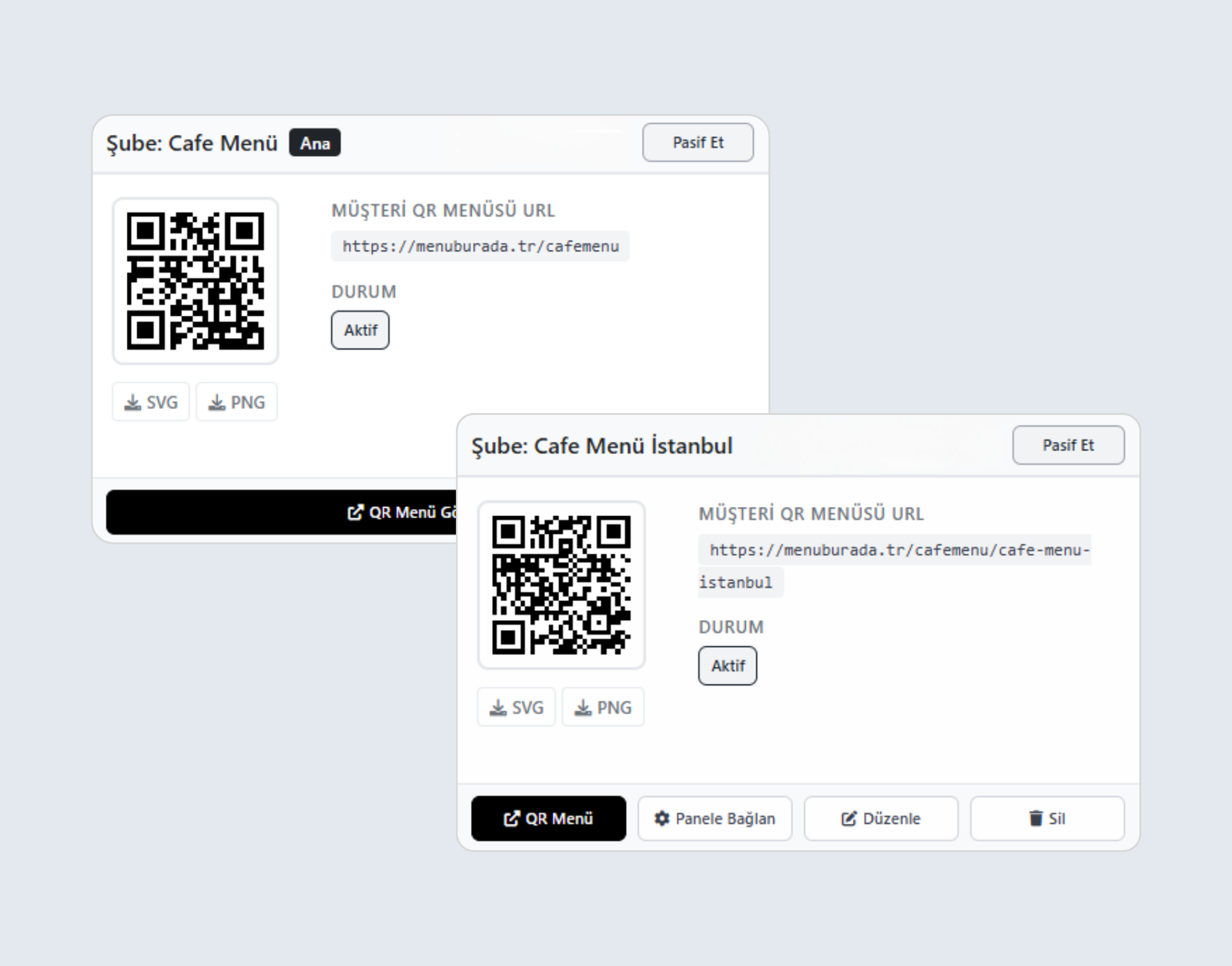 Tek noktadan tüm şubelerinize kolayca hükmedin, menülerinizi anında güncelleyin. Her şube için özel şube paneli ve şube kodu ile profesyonel şekilde tüm şubelere tam kontrol sağlayın. İşletmenizi tek panelden yönetin!